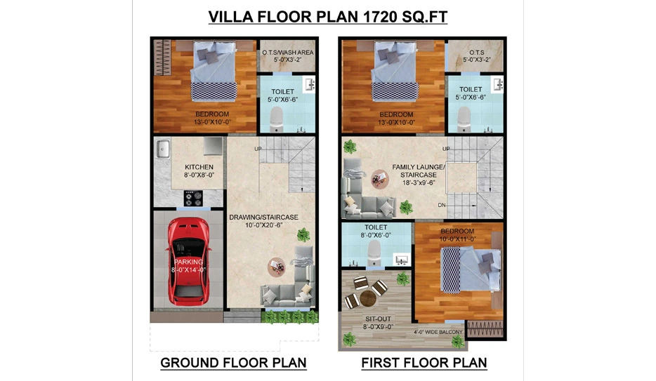 3 BHK + Drawing Hall + 3T + Terrece - 1720 Sqft